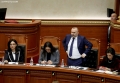 MP Luciano Boci and other opposition MPs in a moment of tension during a parliamentary session. During this session, the MPs requested an interpellation with Prime Minister Edi Rama regarding the McGonigal case, insisting that they would not continue the session if it was not carried out.