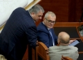 MPs Zef Hila and Bujar Leskaj during a parliamentary session, where the opposition MPs requested an interpellation with the Prime Minister Edi Rama regarding the McGonigal case, insisting that they would not continue the session if it was not carried out .