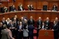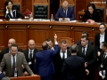MPs Luan Baci, Ina Zhupa, Luciano Boci and other MPs in a moment of tension during a parliamentary session. During this session, the opposition MPs requested an interpellation with Prime Minister Edi Rama regarding the McGonigal case, insisting that they would not continue the session if it was not carried out.