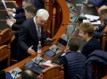 MPs Petrit Vasili voting during a parliamentary session, where the opposition MPs requested an interpellation with Prime Minister Edi Rama regarding the McGonigal case, insisting that they would not continue the session if it was not carried out.