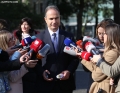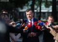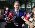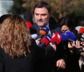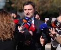 The chairman of the SP parliamentary group, Taulant Balla speaking to journalists outside the parliament building after a session, where the opposition MPs requested an interview with Prime Minister Edi Rama regarding the McGonigal issue, insisting that they would not continue the session if it was not carried out.