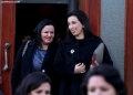 MP Dasantila Tahiraj and Minister of Education and Sports, Evis Kushi leaving a parliamentary session, where the opposition MPs requested an interpellation with Prime Minister Edi Rama regarding the McGonigal case, insisting that they would not continue the session if it was not carried out.