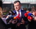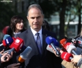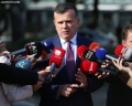 MP Tomor Alizoti outside the parliament building after a session, where the opposition MPs requested an interpellation with Prime Minister Edi Rama regarding the McGonigal case, insisting that they would not continue the session if it was not carried out.