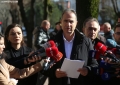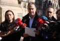 Deputies Albana Vokshi, Luan Baci and Luciano Boci speaking for journalists, after submitting the request for the establishment of an investigative committee for the McGonigal case. DP MPs demand the investigation of Prime Minister Edi Rama for the connection with the former FBI official, Charles McGonigal.
