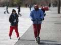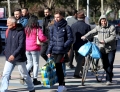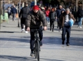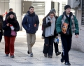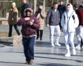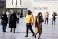 Bypassers dressed in thick winter clothing, scarves and hats, walk in Tirana. For several days temperatures have dropped and the whole country has been swept by strong winds, rain and snow, as temperatures have decreased significantly.