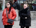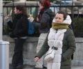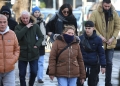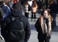 Bypassers dressed in thick winter clothing, scarves and hats, in the streets of Tirana. For several days temperatures have dropped and the whole country has been swept by strong winds, rain and snow, as temperatures have decreased significantly.