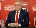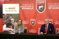 The President of the Albanian Football Federation, Armand Duka speaking during the signing ceremony of a cooperation agreement between the AFF and the 'Terres des Hommes' organization in the field of protection and safety of children in football. The cooperation between the two organizations has already started with the training of the Federation's staff, while these trainings will also be extended to the various football academies and clubs in Albania.
