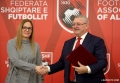 AFF AGREEMENT WITH TERRES DES HOMMES - The President of the Albanian Football Federation, Armand Duka, and the National Director of the organization 'Terre Des Hommes' in Albania, Enkelejda Kallciu, shake hands during the signing ceremony of a cooperation agreement in the field of protection and safety of children in football. The cooperation between the two organizations has already started with the training of the Federation's staff, while these trainings will also be extended to the various football academies and clubs in Albania.