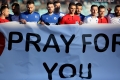 A banner in honor of victims of earthquake in Turkey, during football match, Erzeni of Shijak vs Teuta of Durres, 1-1, valid for the Albanian Super League, played at the Niko Dovana stadium in Durres.