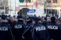 Police force in front of the parliament while the opposition protest is being held, called by Sali Berisha. He and other MPs of the democratic party have tried to enter the parliament even though they were expelled a few days ago for 10 days. Members of the Guard of the Republic tried to stop them while journalists tried to broadcast the words that were said.