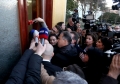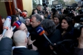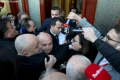 MPs Sali Berisha, Luciano Boci, Albana Vokshi and Tritan Shehu walking towards the parliament where they tried to enter even though they were expelled a few days ago for 10 days. Members of the Guard of the Republic tried to stop them while journalists tried to broadcast the words that were said.
