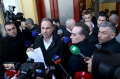MPs Sali Berisha, Luciano Boci, Flamur Noka, Albana Vokshi and Tritan Shehu walking towards the parliament where they tried to enter even though they were expelled a few days ago for 10 days. Members of the Guard of the Republic tried to stop them while journalists tried to broadcast the words that were said.