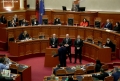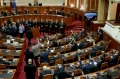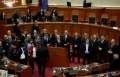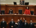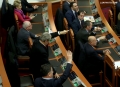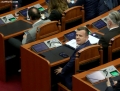 Opposition MPs block the podium while other MPs leave a parliamentary session. Even though they were excluded from the parliament for 10 days, the chairman of the DP, Sali Berisha, and MPs Flamur Noka and Oerd Bylykbashi managed to break through the members of the Guard of the Republic and entered. In a session where at one point there was no electricity, the opposition MPs did not allow its holding by verbally attacking the ministers and demanding the presence of Prime Minister Edi Rama to debate about the McGonigal case.