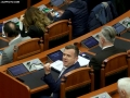Head of the democratic party, Sali Berisha and MP Flamur Noka during a parliamentary session. Even though they were excluded from the parliament for 10 days, the chairman of the DP, Sali Berisha, and MPs Flamur Noka and Oerd Bylykbashi managed to break through the members of the Guard of the Republic and entered. In a session where at one point there was no electricity, the opposition MPs did not allow its holding by verbally attacking the ministers and demanding the presence of Prime Minister Edi Rama to debate about the McGonigal case.