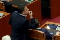 MP Flamur Noka blowing a whistle to prevent the majority MPs from speaking during a parliamentary session. Even though they were excluded from the parliament for 10 days, the chairman of the DP, Sali Berisha, and MPs Flamur Noka and Oerd Bylykbashi managed to break through the members of the Guard of the Republic and entered. In a session where at one point there was no electricity, the opposition MPs did not allow its holding by verbally attacking the ministers and demanding the presence of Prime Minister Edi Rama to debate about the McGonigal case.