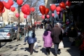 Flowers for sale on a street in Tirana, decorated on the occasion of Valentine's Day.
