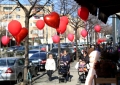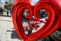 Heart-shaped decorations on a street in Tirana, on the occasion of Valentine's Day.