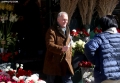 Women with flowers in their hands in the Skanderbeg square in Tirana, decorated on the occasion of Valentine's Day.