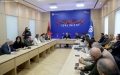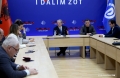 MP Edmond Spaho and members Jozefina Topalli and Lefter Maliqi speaking during a leadership meeting called by the chairman of the democratic party, Sali Berisha in the blue headquarters. During the meeting, Berisha spoke about the protest in front of the parliament and attacked Prime Minister Edi Rama. He has announced a protest on March 3, which coincides with the day when the Tirana court is expected to issue a verdict on the DP logo and seal.