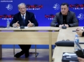 The chairman of the Democratic Party, Sali Berisha and MP Flamur Noka speaking during a leadership meeting in the blue headquarters. During the meeting, Berisha spoke about the protest in front of the parliament and attacked Prime Minister Edi Rama. He has announced a protest on March 3, which coincides with the day when the Tirana court is expected to issue a verdict on the DP logo and seal.