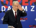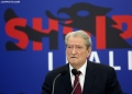 The Chairman of the Democratic Party, Sali Berisha exiting a press conference at the blue headquarters. He emphasized the importance of February 20, 1991, when the bust of former dictator Enver Hoxha was brought down, adding that the message of that day is still relevant today.