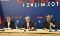 MPs Tritan Shehu and Albana Vokshi during a meeting of the DP national council during which it was decided that on February 23 another protest will be held in front of the parliament.