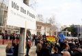 Citizens with signs in their hands during a protest in front of the parliament. In the protest called by Berisha, who along with 14 other MPs of the democratic party have been expelled from the parliament, appeals were made to the Appeals court regarding the case of the logo and seal of the Democratic Party. During the protest, Berisha said that if the verdict was not in favor of his group, he and the protesters would march towards the house of Prime Minister Edi Rama.