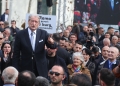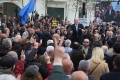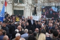 The chairman of the democratic party, Sali Berisha, during a protest in front of the parliament. In the protest called by Berisha, who along with 14 other MPs of the democratic party have been expelled from the parliament, appeals were made to the Appeals court regarding the case of the logo and seal of the Democratic Party. During the protest, Berisha said that if the verdict was not in favor of his group, he and the protesters would march towards the house of Prime Minister Edi Rama.