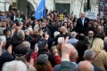 PROTESTS IN FRONT OF THE PARLIAMENT - Chairman of the Democratic Party, Sali Berisha speaking to the protesters in front of the parliament. In the protest called by Berisha, who along with 14 other MPs of the democratic party have been expelled from the parliament, appeals were made to the Appeals court regarding the case of the logo and seal of the Democratic Party. During the protest, Berisha said that if the verdict was not in favor of his group, he and the protesters would march towards the house of Prime Minister Edi Rama.