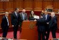 MPs Albana Vokshi, Luciano Boci, Isuf Celaj, Kastriot Piroli speaking during a parliamentary session where there were debates between the majority and opposition MPs regarding the absence of Prime Minister Edi Rama. The opposition MPs accused the Speaker of the Parliament, Lindita Nikolla, of constantly breaking the rules, while they demanded to talk about the McGonigal issue, despite the fact that Prime Minister Edi Rama has been on an official visit to Japan for several days.