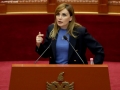 MP Jorida Tabaku speaking during a parliamentary session where there were debates between the majority and opposition MPs regarding the absence of Prime Minister Edi Rama. The opposition MPs accused the Speaker of the Parliament, Lindita Nikolla, of constantly breaking the rules, while they demanded to talk about the McGonigal issue, despite the fact that Prime Minister Edi Rama has been on an official visit to Japan for several days.