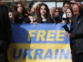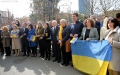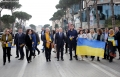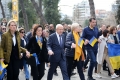 Head of the EU Delegation in Tirana, Ambassador Christiane Hohmann, Ambassador of Ukraine in Tirana, Volodymyr Shukrov, the Ambassador of the United States in Tirana, Yuri Kimduring a solidarity march with the Ukrainian people on the 1st anniversary of the Russian aggression in Ukraine.