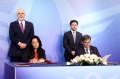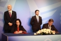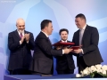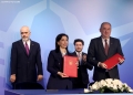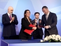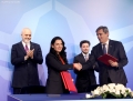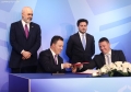 Prime Minister Edi Rama, his counterpart Dritan Abazovic, the Minister of Agriculture and Rural Development, Frida Krifca and the Minister of Agriculture, Forestry and Water Resources of Montenegro, Vladimir Jokovic during the ceremony of signing the agreements between Albania and Montenegro after a meeting of both governments. The two ministers signed a cooperation agreement in the fields of maintenance and joint management of fishing in the Shkodra lake and the Bune river.