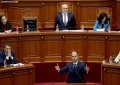 Prime Minister Edi Rama speaking during a parliamentary session, in which the opposition had requested an interpellation and a motion for a debate with the Prime Minister regarding the McGonigal issue. The Prime Minister held his speech by stating that the indictment brought against the former high official of the FBI, Charles McGonigal, does not implicate either him or the Albanian government. At the end of the speech, Prime Minister Rama left the session, not giving clarifications or answers to the deputies.