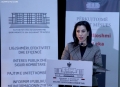 The Minister of Education and Sports, Evis Kushi speaking during a memorial for the teacher poets Vilson Blloshmi and Genc Leka, organized by the Authority for Information on Former State Security Documents in cooperation with the Ministry of Education and Sports. The two poets were shot by the communist regime because of their writings, which are now collected in a work called Kur Bota ish ne gjume, by publisher Bardhyl Musai.