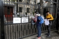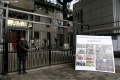 Youngsters of the Youth Forum of the Democratic Party placing sings on the railings of the Court of Appeal, while in front of its door there is a poster in support of Berisha's group within the party. The court is expected to decide on the ownership of the seal and logo of the Democratic Party, after the decision of the first instance, by judge Agron Zhukri, was appealed by the Alibeaj group.