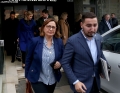 MPs Bledjon Nallbati and Jorida Tabaku leaving the premises of Hotel Mondial, where the chairman of the DP parliamentary group, Enkelejd Alibeaj held a meeting with the MPs and members of the DP leadership, who are supporters of the former chairman, Lulzim Basha. After submitting the request for party registration in the May 14 elections, Alibeaj and his group called on the candidates who came out of the primary process to join them to register as candidates of the democratic party in the next elections.