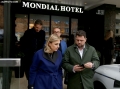 The legal representative of the Democratic Party, Indrit Sefa and MP Merita Bakiu leaving the premises of Hotel Mondial, where the chairman of the DP parliamentary group, Enkelejd Alibeaj held a meeting with the MPs and members of the DP leadership, who are supporters of the former chairman, Lulzim Basha. After submitting the request for party registration in the May 14 elections, Alibeaj and his group called on the candidates who came out of the primary process to join them to register as candidates of the democratic party in the next elections.