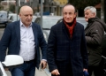 The legal representative of the Democratic Party, Indrit Sefa and MP Dashnor Sula leaving the premises of Hotel Mondial, where the chairman of the DP parliamentary group, Enkelejd Alibeaj held a meeting with the MPs and members of the DP leadership, who are supporters of the former chairman, Lulzim Basha. After submitting the request for party registration in the May 14 elections, Alibeaj and his group called on the candidates who came out of the primary process to join them to register as candidates of the democratic party in the next elections.