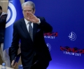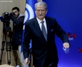 Former Prime Minister, Sali Berisha entering a press conference in the premises of the blue headquarters. During his speech, Berisha said that he would enter the election in a coalition with the freedom party of Ilir Metes and repeated that he would not cooperate with Enkelejd Alibeaj.