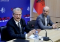 SALI BERISHA IN CONFERENCE - Former Prime Minister, Sali Berisha and the head of the Press Office of the Democratic Party, Alfred Lela entering a press conference in the premises of the blue headquarters. During his speech, Berisha said that he would enter the election in a coalition with the freedom party of Ilir Metes and repeated that he would not cooperate with Enkelejd Alibeaj.