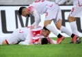 Partizani players celebrate scoring a goal during the football match, Vllaznia of Shkodra vs Partizani, 1-1, valid for the Albanian Super League, played at the Loro Borici stadium in Shkodra.