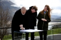 Prime Minister Edi Rama, Minister of Tourism and Environment, Mirela Kumbaro and CEO of Patagonia, Ryan Gellert demonstratively signing the document declaring the Vjosa River a National Park, which comes as a result of a long campaign, which also included the participation of the actor Leonardo Dicaprio, to protect the last wild river in Europe. This status, approved by decision of the Council of Ministers, prohibits any kind of construction that affects the river.