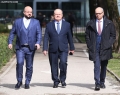 MPs Petro Koci, Saimir Hasalla and Bafjar Zeqaj entering a parliamentary session, during which several draft laws were approved with the votes of both parties, the majority and the opposition.