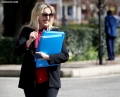 Minister of Culture, Elva Margariti entering a parliamentary session, during which several draft laws were approved with the votes of both parties, the majority and the opposition.