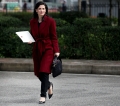 Minister of Tourism and Environment, Mirela Kumbaro entering a parliamentary session, during which several draft laws were approved with the votes of both parties, the majority and the opposition.