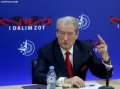 Former Prime Minister Sali Berisha speaking in a conference with journalists at the democratic party headquarters. Berisha spoke about the belonging of the seat on Jean D'Arc Boulevard and the May 14 local elections.