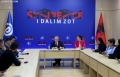 SALI BERISHA IN CONFERENCE WITH JOURNALISTS - Former Prime Minister Sali Berisha speaking in a conference with journalists at the democratic party headquarters. Berisha spoke about the belonging of the seat on Jean D'Arc Boulevard and the May 14 local elections.