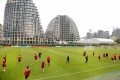 TRAINING SESSION OF THE NATIONAL TEAM - The coach of the Albanian national football team, the Brazilian Sylvio Mendes Canpos Junior (Silvinjo) and the players of the national team during a training session in the fields of the House of Football, on the eve of the match against Poland on March 27, valid for European Championship Germany 2024.