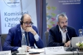 The State Commissioner of Elections, Ilirjan Celibashi and the Chairman of the OSCE Presence in Albania, Ambassador Guido De Sanctis speaking during a joint conference of CEC and OSCE where the main topic was the upcoming local elections of May 14. The speakers called on the participants in the elections, for the parties not to put pressure on the media to violate professional ethics.